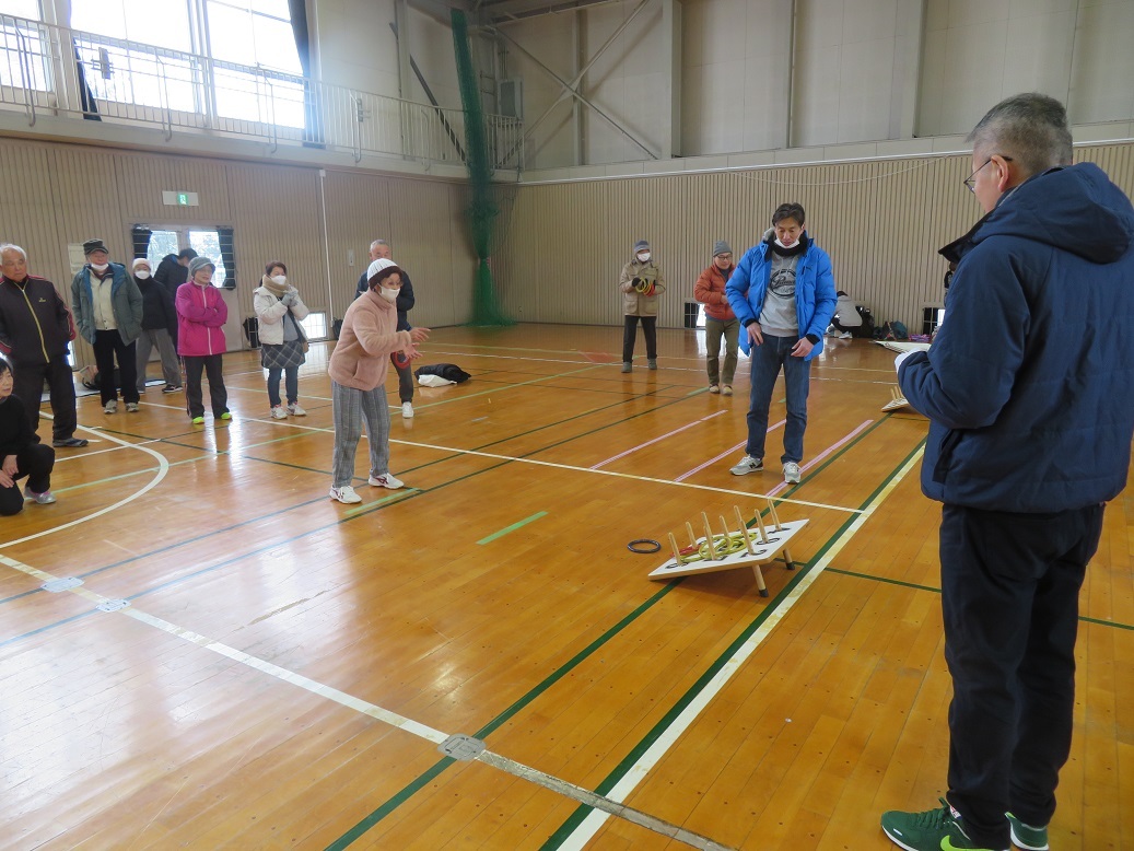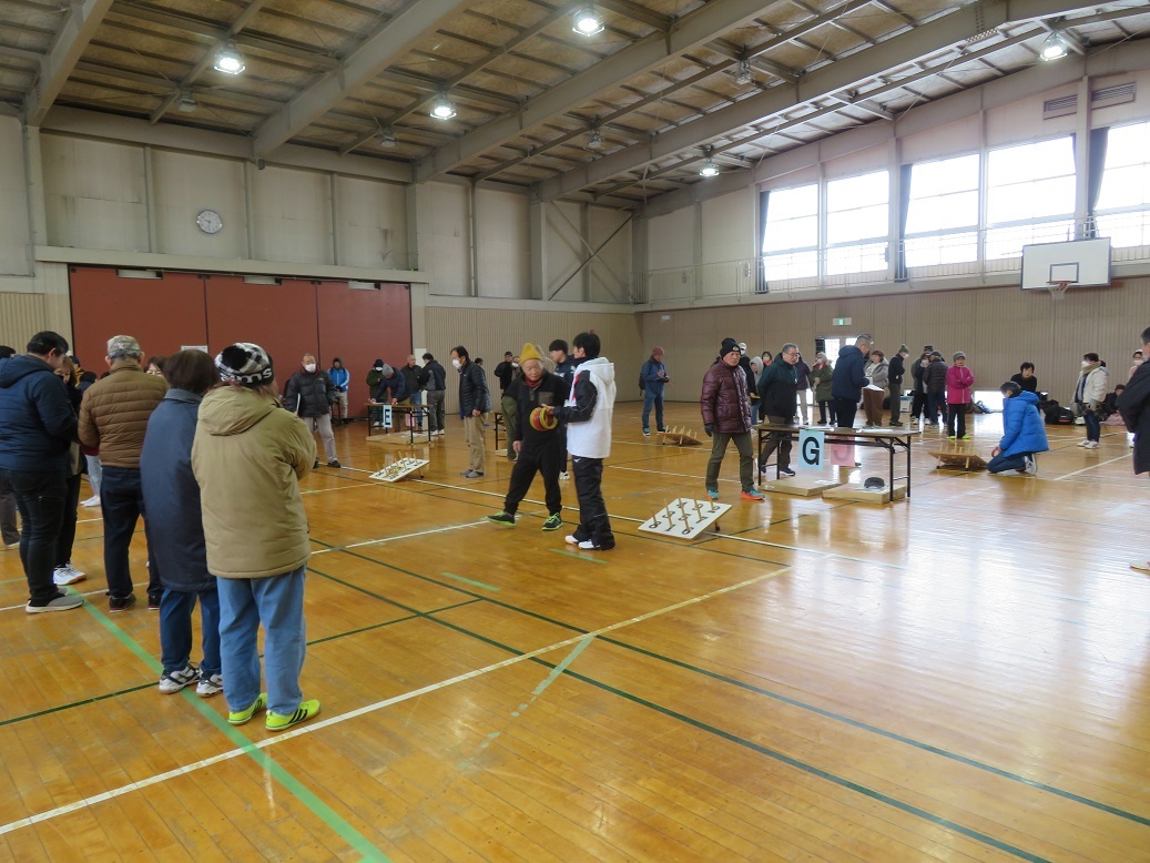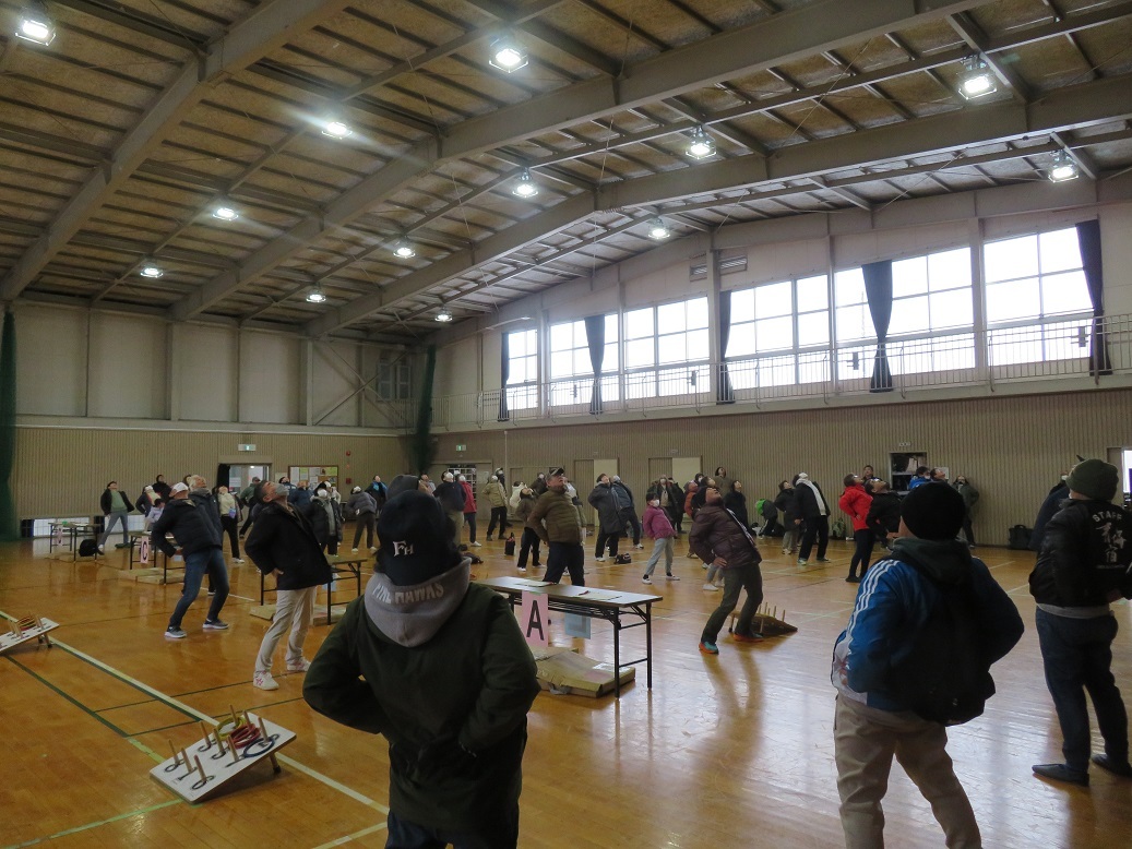 令和8年2月8日(日)に輪投げ大会を新町市民センター体育館で実施しました。衆議院議員選挙の投票日で前日より降雪があり、開催が危ぶまれましたが、21チーム94名の方に参加いただきました。雪の中ご来訪いただくのも大変な状況でしたが、多くの方にご参加頂き盛大に開催することができました。厚く御礼申し上げます。